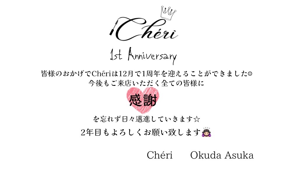 Cheriは2022.12.15日で1周年を迎えることができました☆